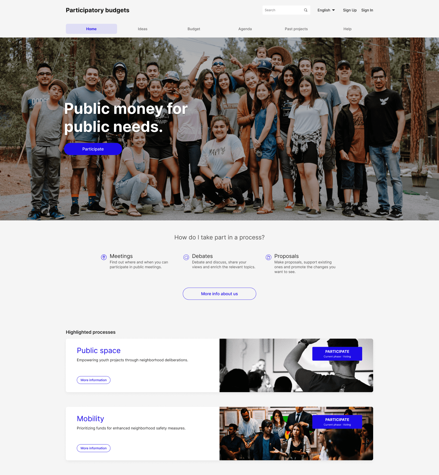 Os modelos permitem que todos publiquem uma plataforma com configurações definidas para modos participativos específicos. Inspirado nas plataformas participativas mais bem-sucedidas do mundo.